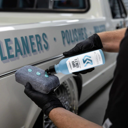 SUPER CERA 2.0 é uma cera líquida 2 em 1, que possibilita limpeza e proteção instantâneas. Pode ser aplicada manualmente ou com máquina. Manualmente, protege a pintura. Com máquina, possui função cleaner, devido aos abrasivos na fórmula, que limpam o verniz e corrigem micro riscos.